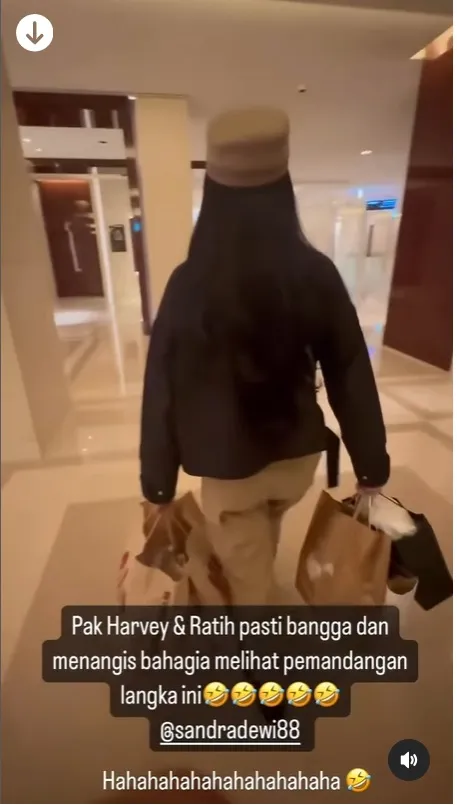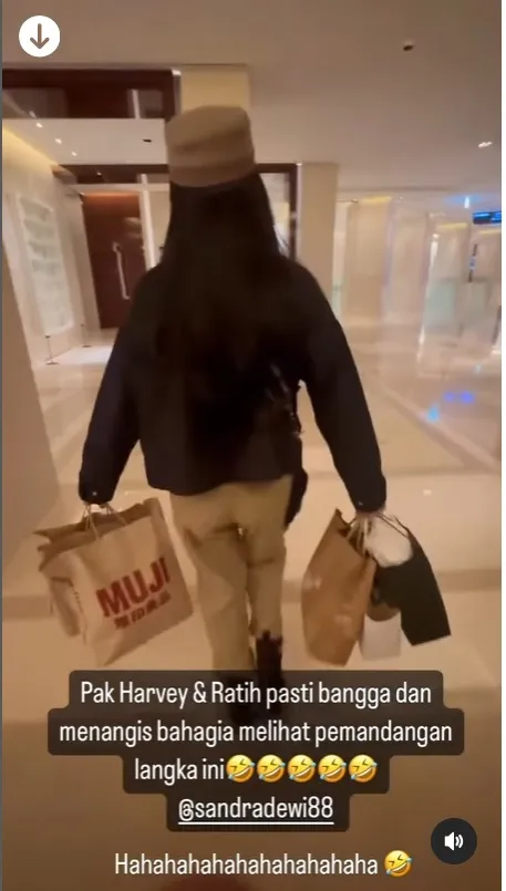 Faktanya, sandra Dewi harus menenteng belanjaannya yang sangat banyak sendirian, tanpa bantuan siapapun termasuk asisten yang berada di indonesia.