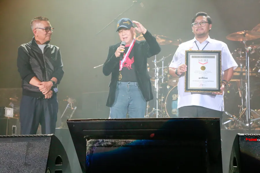 "Terima kasih. Saya mewakili God Bless untuk menerima penghargaan dari MURI," ucap Hendra, disambut tepuk tangan meriah penonton.