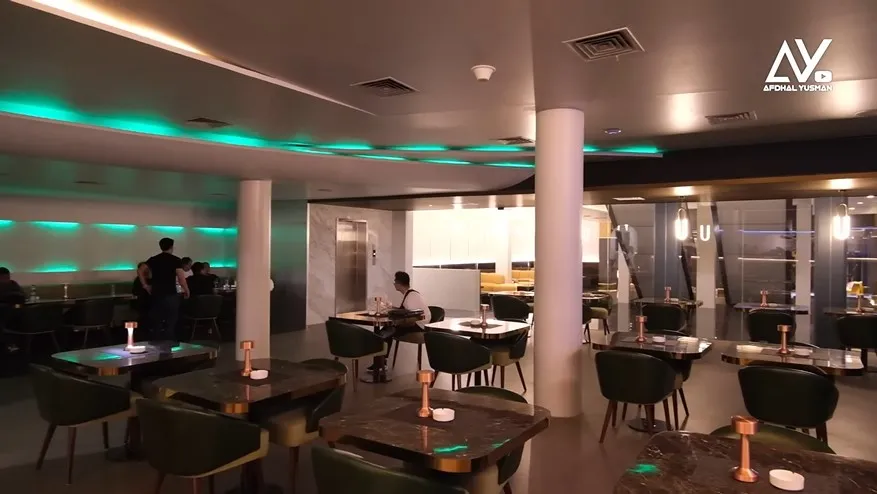 Di lantai bawah ada restoran yang kata Afdhal desainnya tuh futurustik tapi tetap santai. Restonya ini menjual menu Indonesia sampai Eropa.