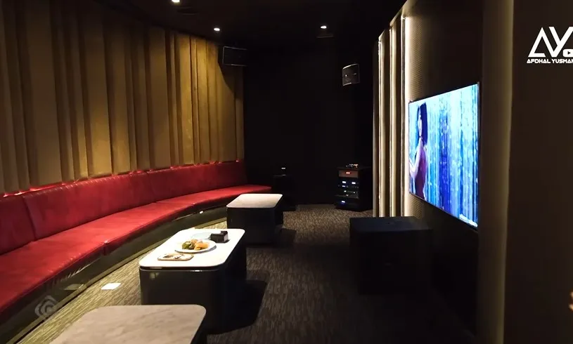 Yang ini ruang karoke VVIP. Dilengkapi dengan TV 75 inch. Selain itu tiap room baik VVIP maupun standar ada toilet. Choky juga bilang buat sound system aja mereka habis 15 miliar rupiah.