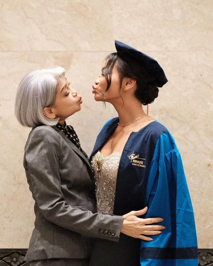 Berikut potret manis Sarah Tumiwa bersama ibunda di momen kelulusannya. Terlihat sang mama mencium pipinya dan Sarah tersenyum bahagia.