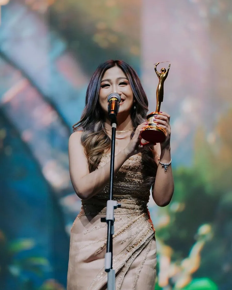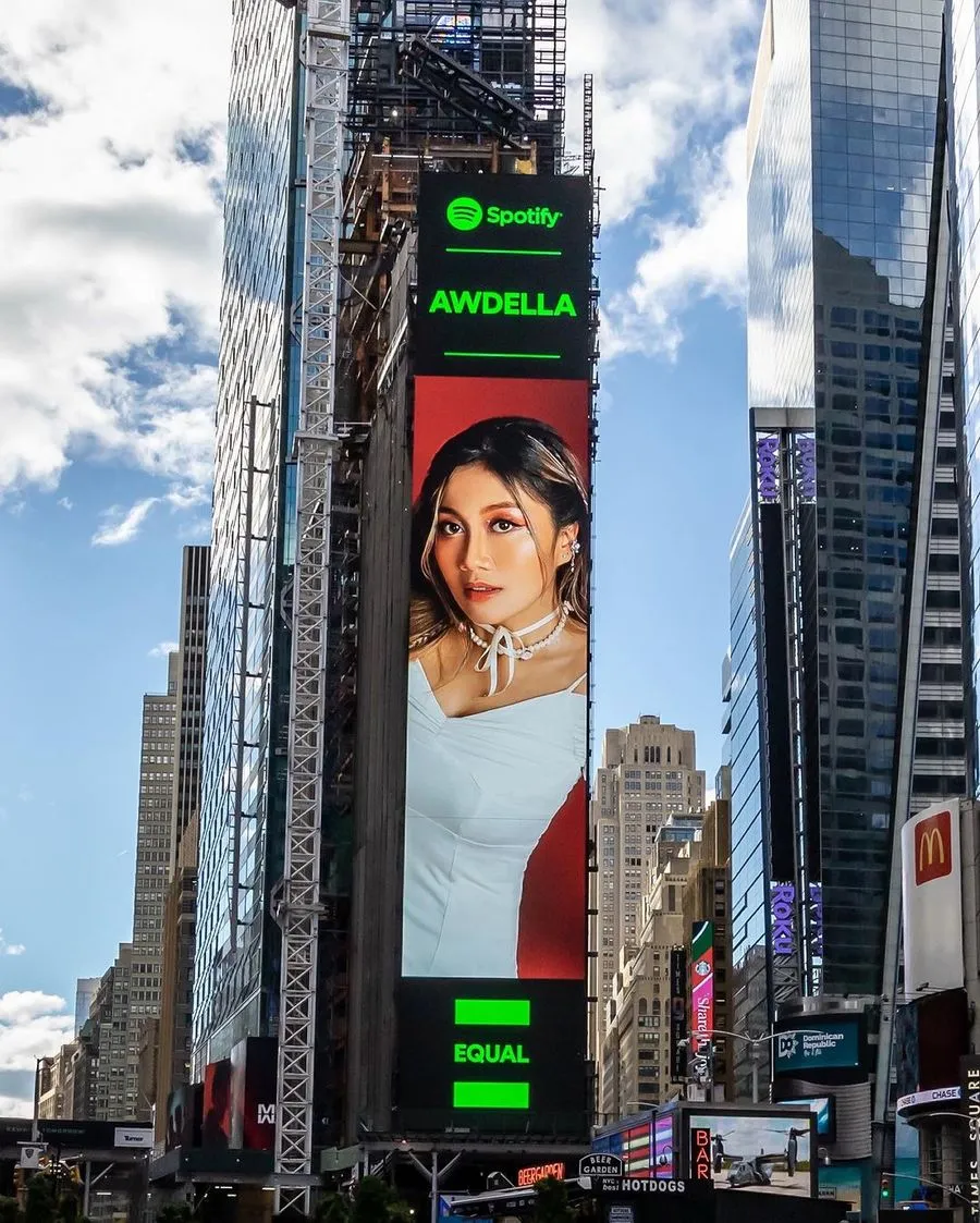 Selain meraih Piala Citra, ternyata Awdella baru-baru ini berhasil sebagai salah satu penyanyi yang fotonya terpampang di Times Sqare New York.