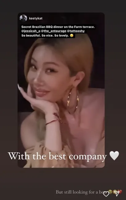Teman Jessi mengunggah video saat ia dan sang penyanyi makan malam. Jessi repost di IG Story dan bilang dia punya teman yang hebat. Di bagian bawah dia bilang juga masih mencari 'boo' alias pacar.