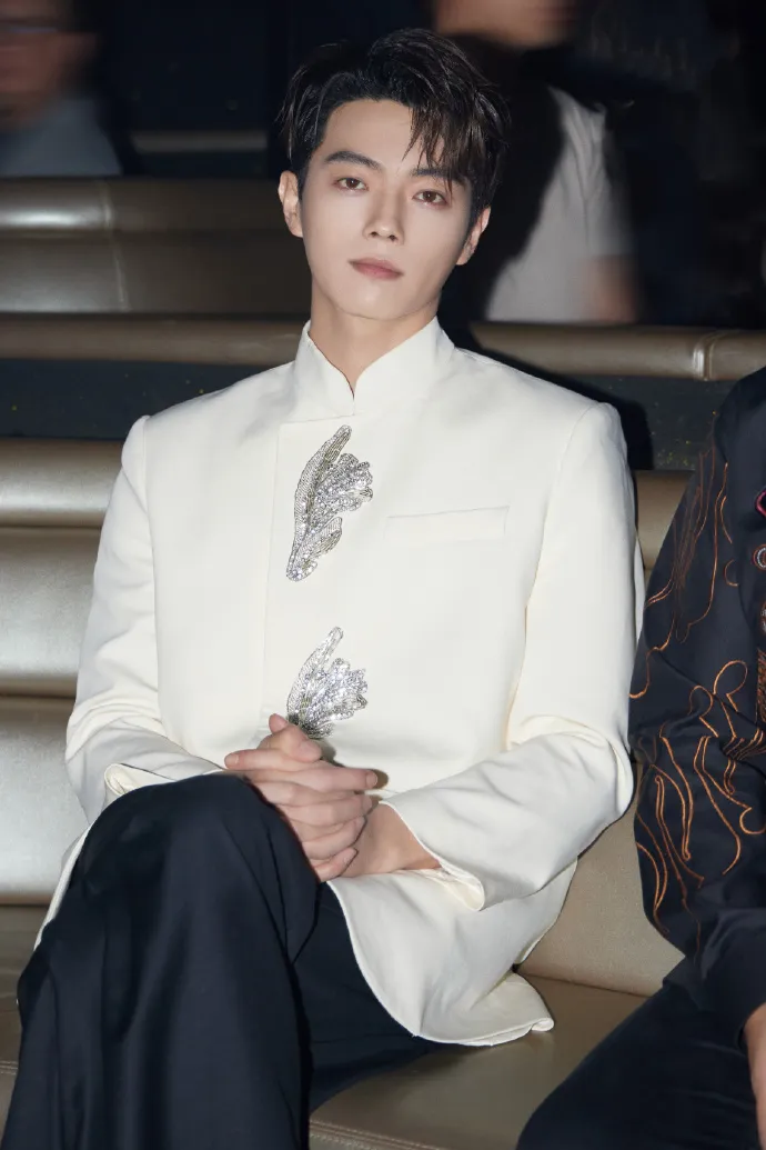 Dalam kesempatan ini Xu Kai tempak memakai jas berornamen silver dan celana hitam. Penampilan rapinya sangat memesona.