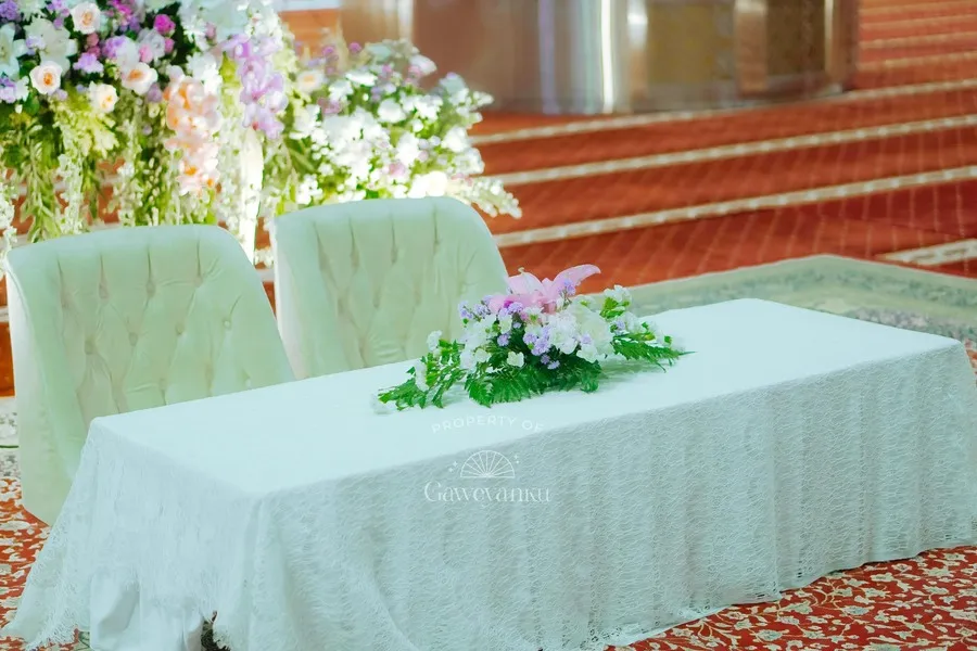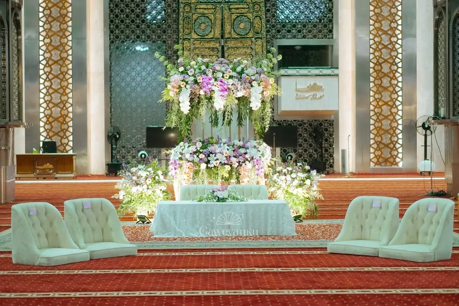 Momen sakral yang mempersatukan dua sejoli dalam ikatan pernikahan tersebut digelar dengan cukup sederhana berhiaskan rangkaian bunga.