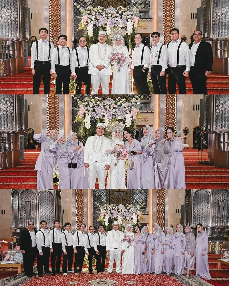 Sementara itu, para bridesmaid dan groomsmen yang mengenakan seragam mendampingi kedua mempelai dalam meriahnya sesi foto bersama.
