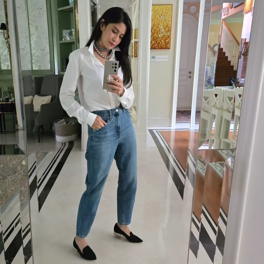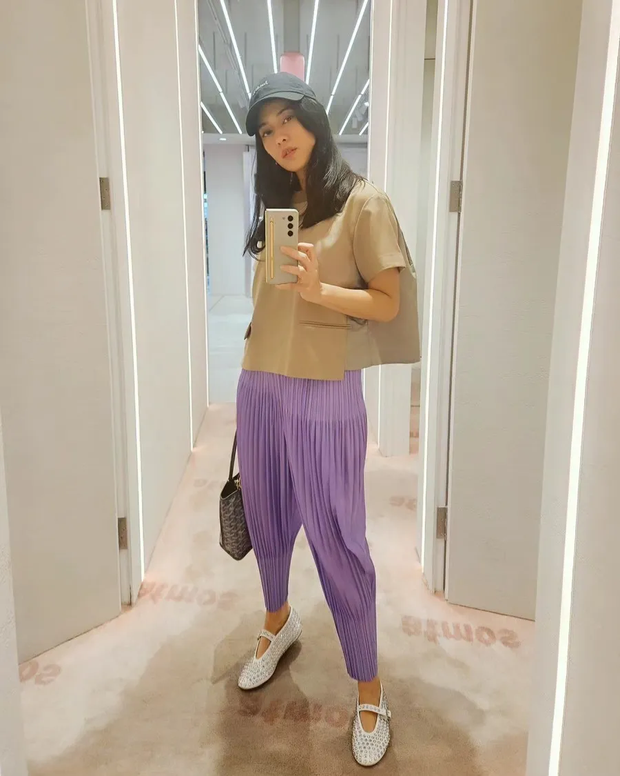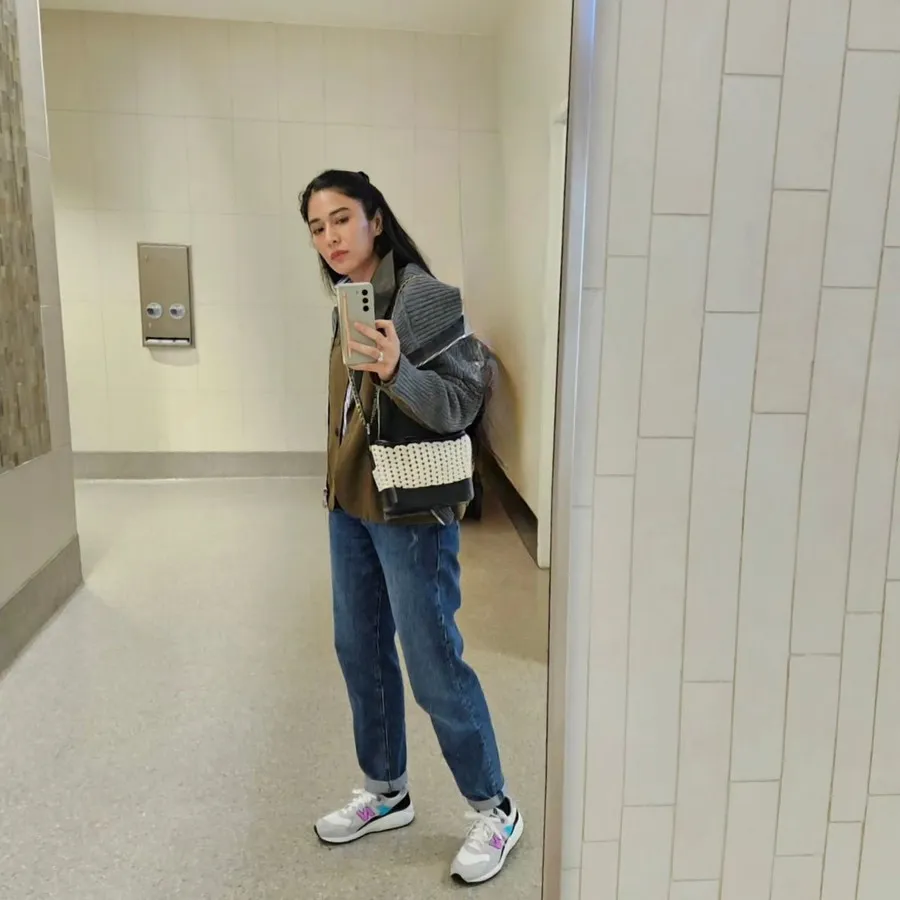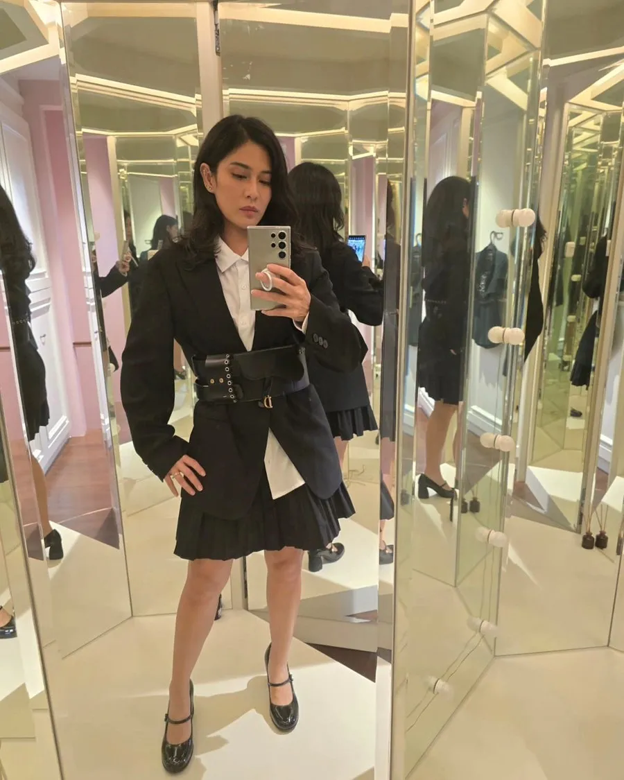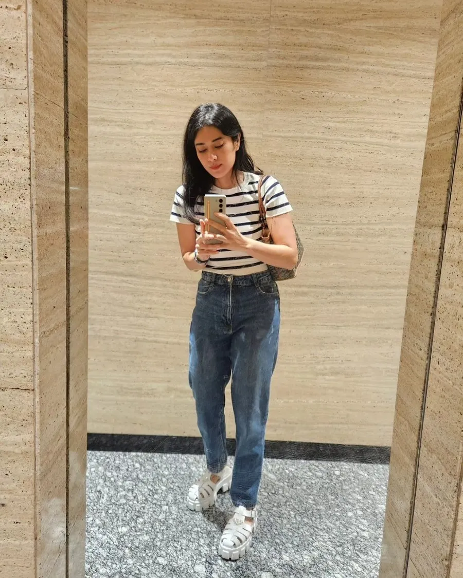 Padu padan outfit, paras, serta postur tubuhnya membuat ibu dua anak ini disebut terlihat awet muda oleh para netizen.