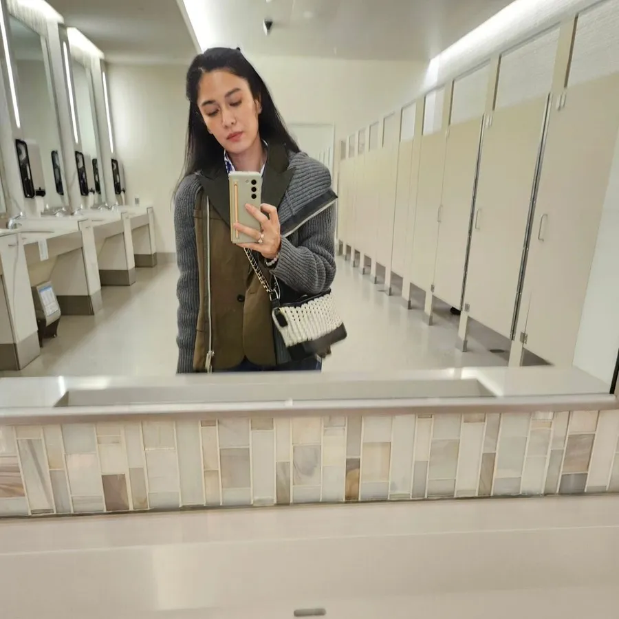 Ia tetap pede menggunakannya untuk mirror selfie dalam berbagai tempat dan kesempatan. Siapa yang hobi mirror selfie nih, KLovers?