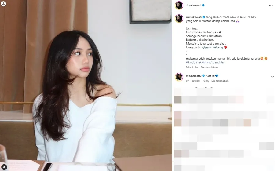 Dalam sebuah unggahannya di bulan April lalu, Ririn Ekawati mengungkapkan rasa rindunya kepada sang anak. Ririn turut mendoakan Eci yang berada ribuan kilometer dirinya.