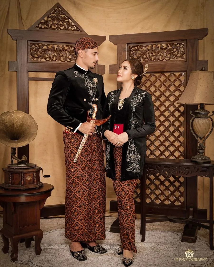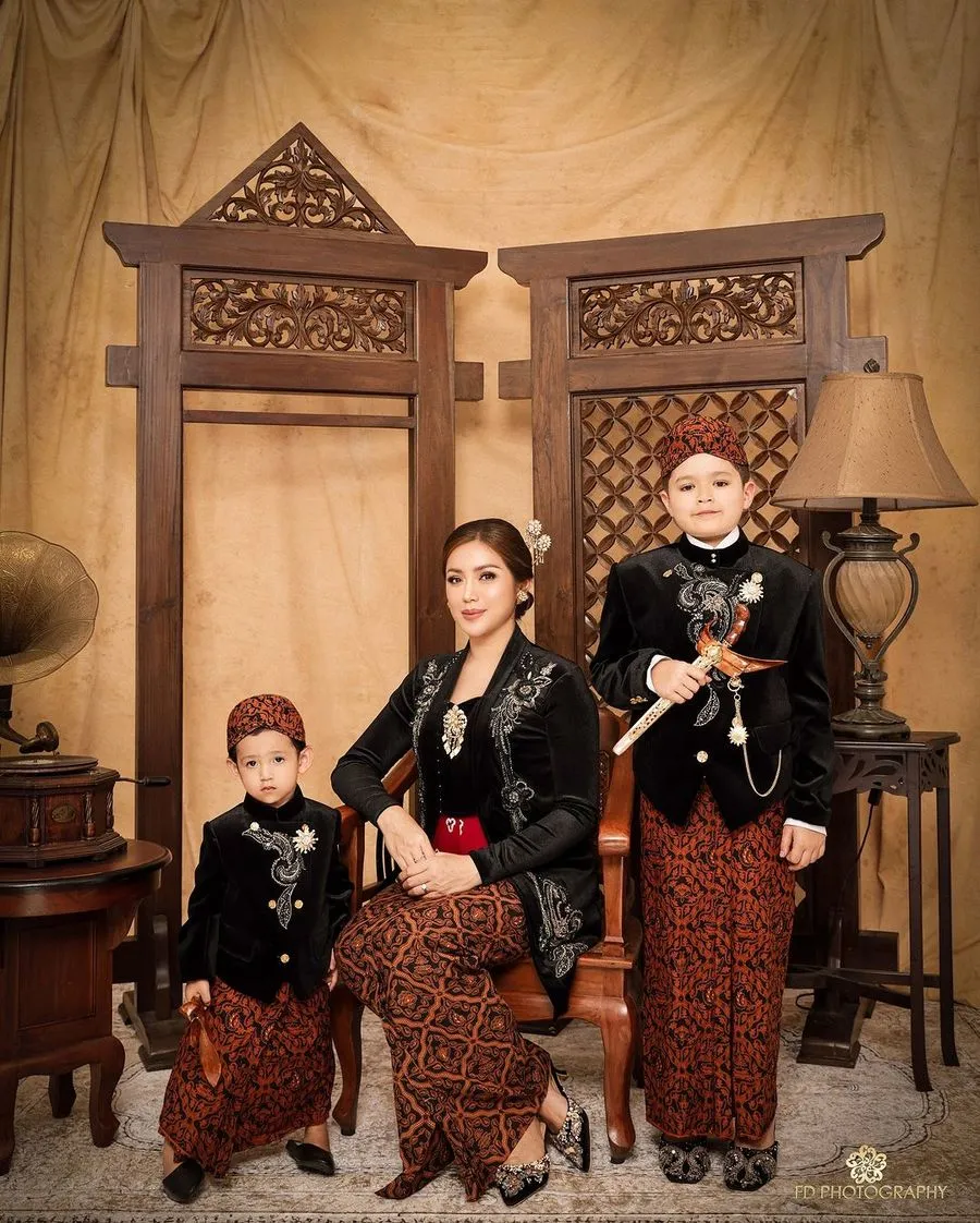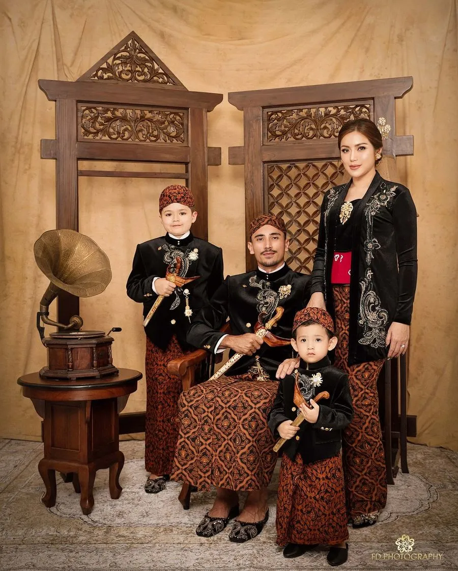 Ya, dalam pemotretan itu semuanya hadir mulai dari suami dan kedua buah hatinya. Mereka kompak kenakan busana adat Jawa.