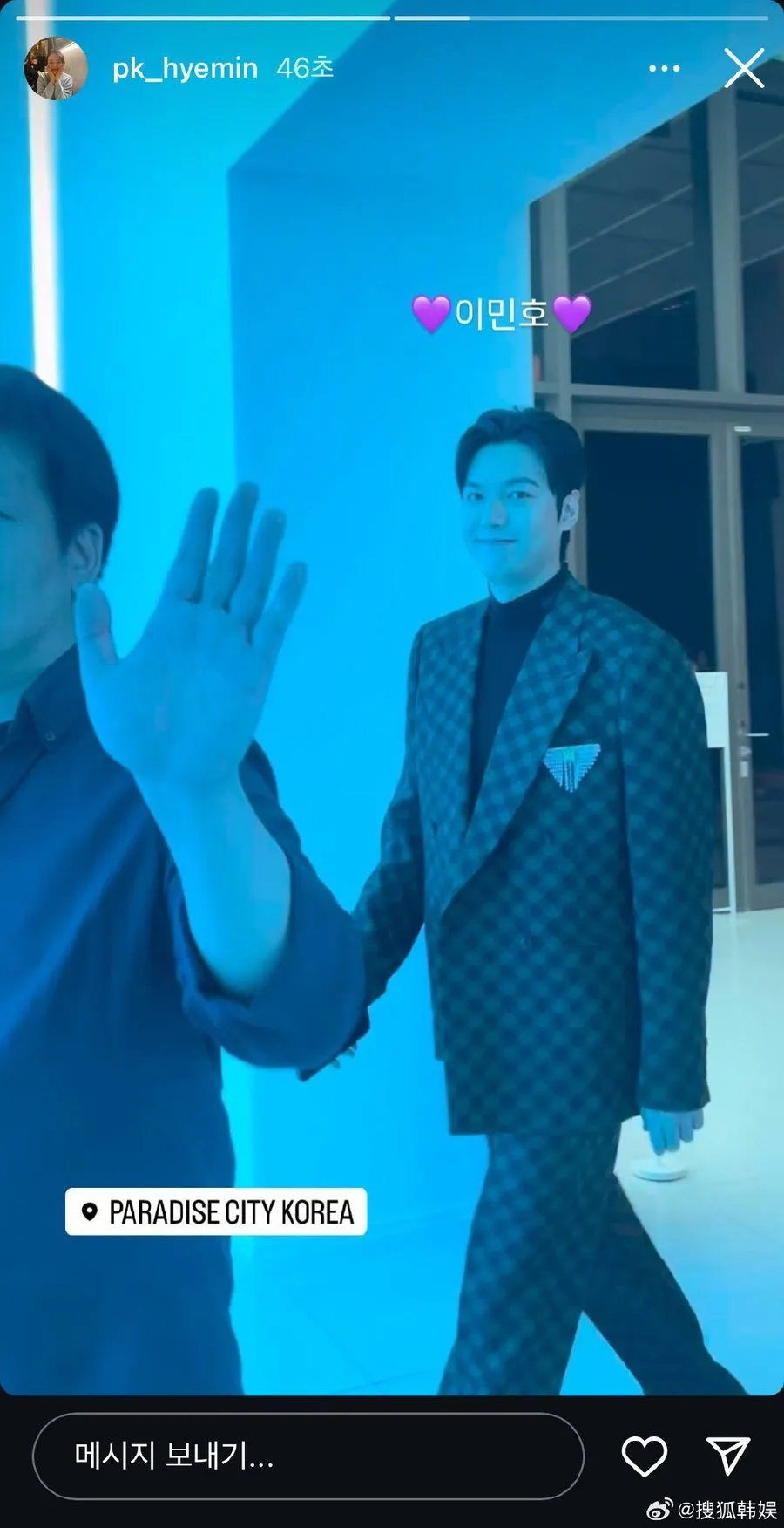Sementara itu, Lee Min Ho mencuri perhatian dengan setelan jas kotak-kotak, menunjukkan gaya yang unik dan penuh percaya diri.