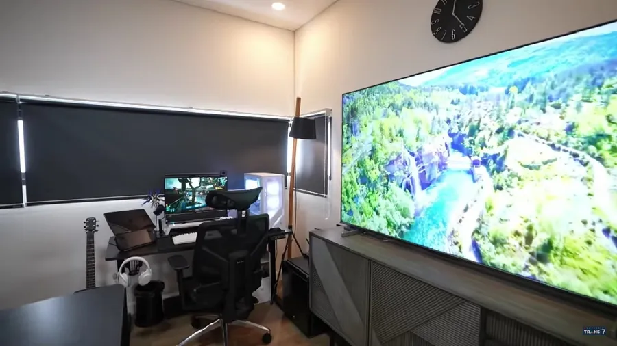 Di depan kasur, ada televisi yang mencapai 75 inch. Di samping televisi ada seperangkat komputer game milik Tengku Tezi yang memang hobi bermain game.