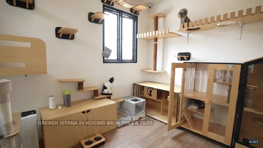 Ini adalah penampakan istana kecil bagi kucing-kucing jantan kesayangan Tyas Mirasih. Tampak nyaman, ruangan ini bahkan dilengkapi dengan banyak mainan.
