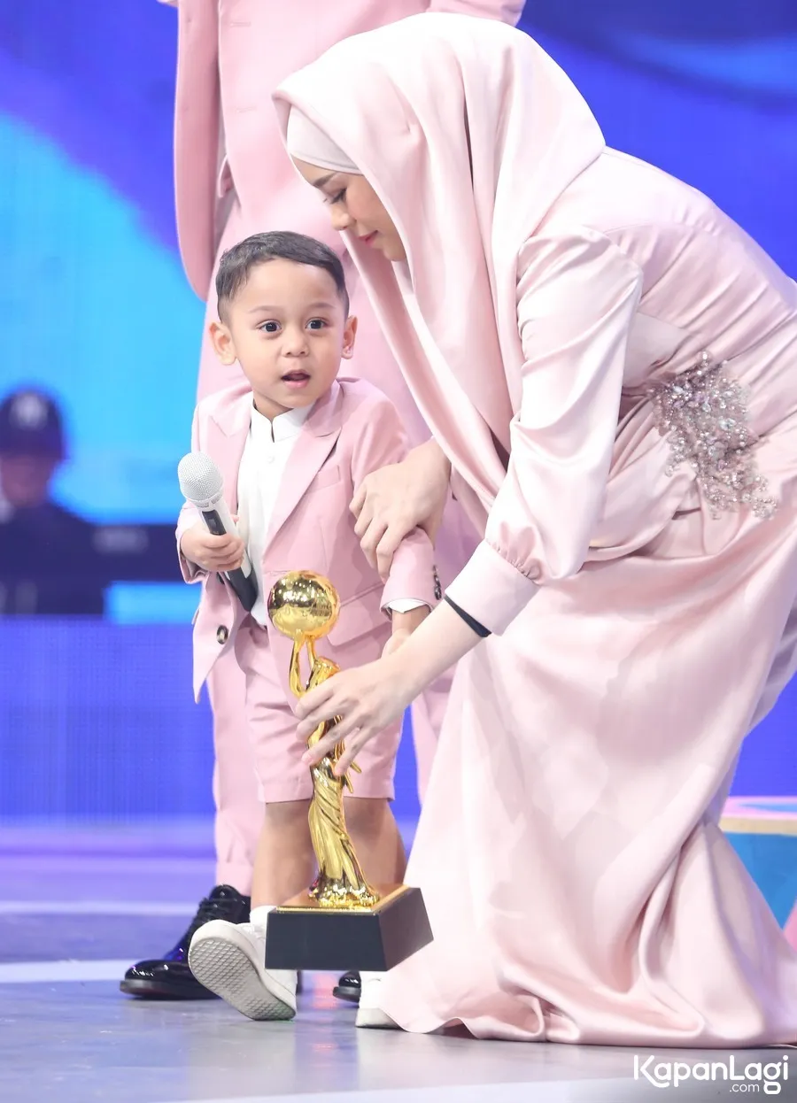 "Alhamdulillah hari ini piala kedua di keluarga kami karena tadi abang sebelumnya udah dapat apresiasi secara khusus dikasih kepada Abang El atas karirnya di usia 3 tahun, masih batita dan sudah mengeluarkan sebuah karya," ungkap Rizky Billar penuh bangga.