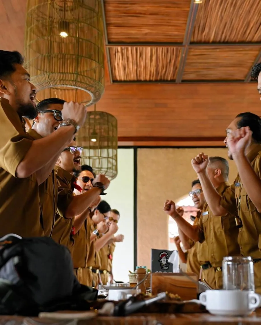 Terlihat kompak mengenakan setelan PNS, The Prediksi memang selalu unik dengan gebrakannya sendiri.