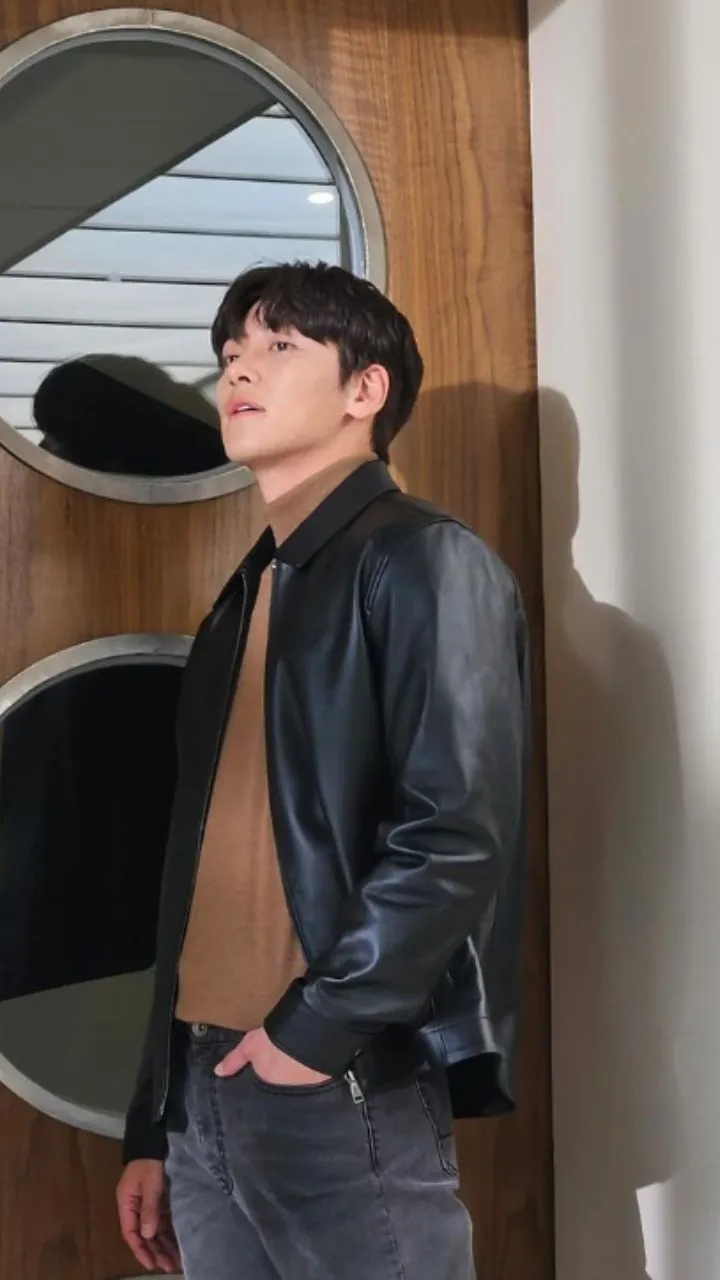 Jaket yang digunakkan Ji Chang Wook ini punya kesatuan komponen warna yang cantik banget ya. Ada cokelat di bagian kerahnya dan celananya match dengan itu. Untuk warna dasar jaket dan dalamannya juga terlihat menyala meskipun bewarna gelap.