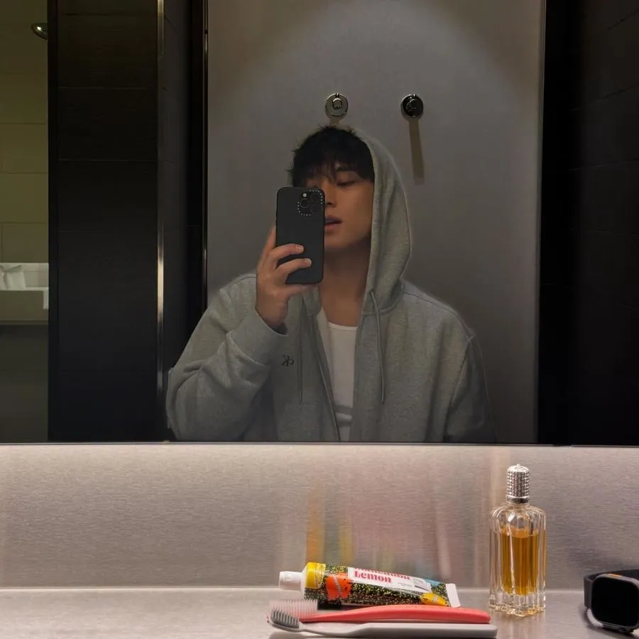 Nggak cuma selalu banjir pujian karena outfitnya yang keren-keren, Mingyu juga selalu punya charm tersendiri saat melakukan mirro selfie.
