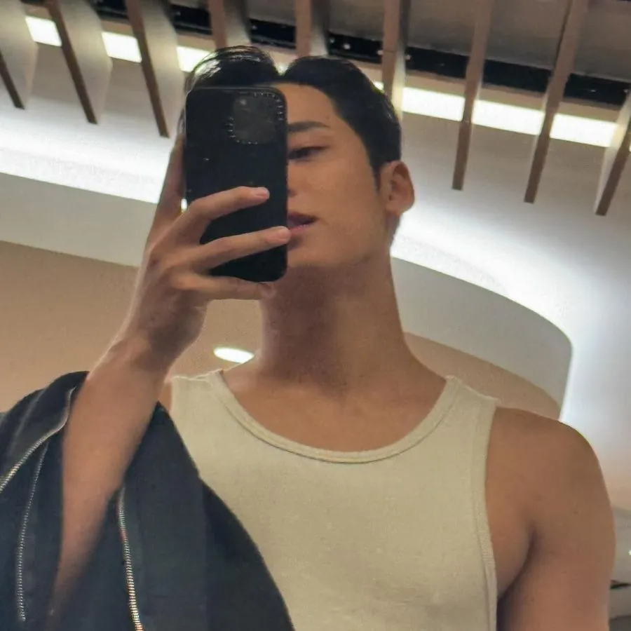 Mingyu jago banget soal mirror selfie, di tahun 2024 ini saja dia sudah mengunggah cukup banyak pose di depan cermin. Termasuk ini salah satu yang paling baru.
