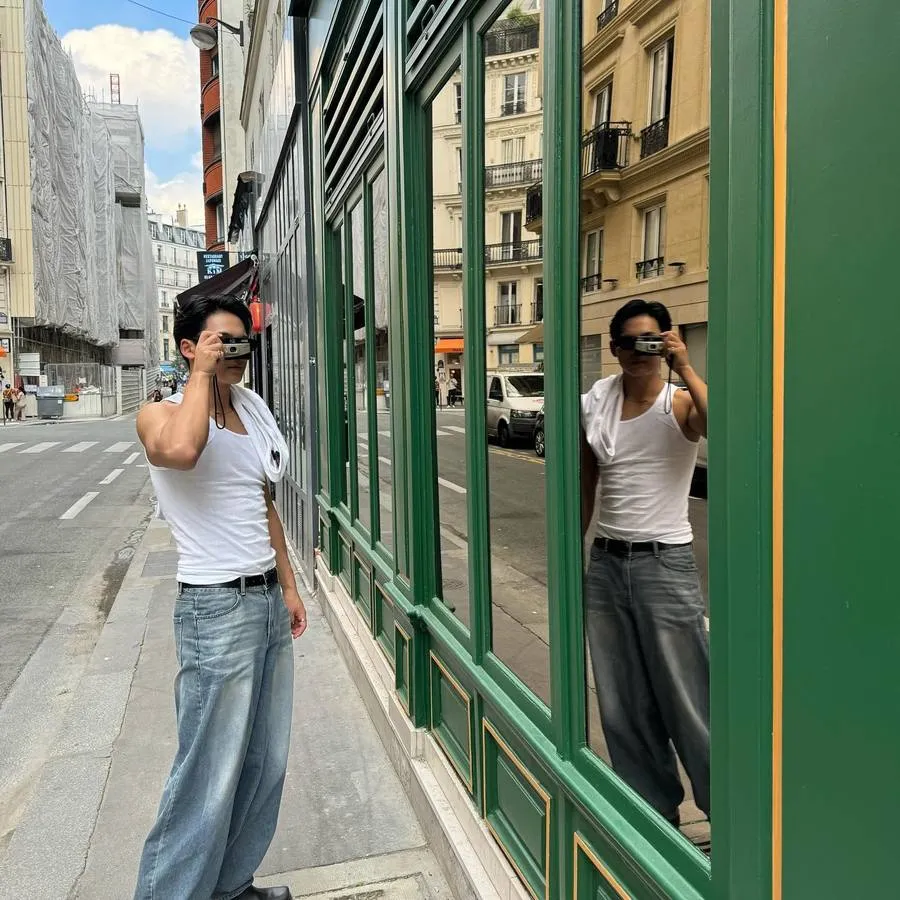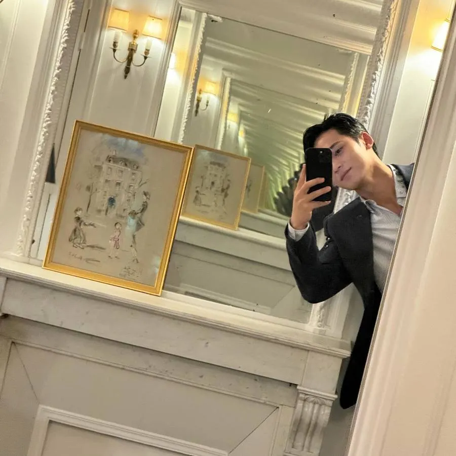 Saat THE8 ulang tahun di bulan November ini, Mingyu juga mengunggah foto mirror selfie mereka yang diambil di Paris.