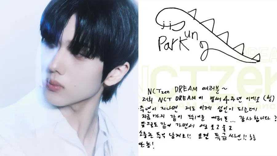 Jisung NCT DREAM - Maknae NCT DREAM ini punya tanda tangan berbentuk dinosaurus yang lucu dan pas banget dengan kepribadiannya yang playful. Setuju gak?