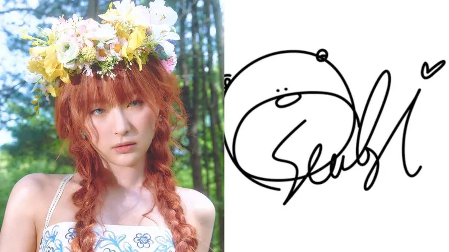 Seulgi Red Velvet - Siapa yang bisa lupa dengan tanda tangan Seulgi yang berbentuk beruang besar? Ikonik banget, kan?