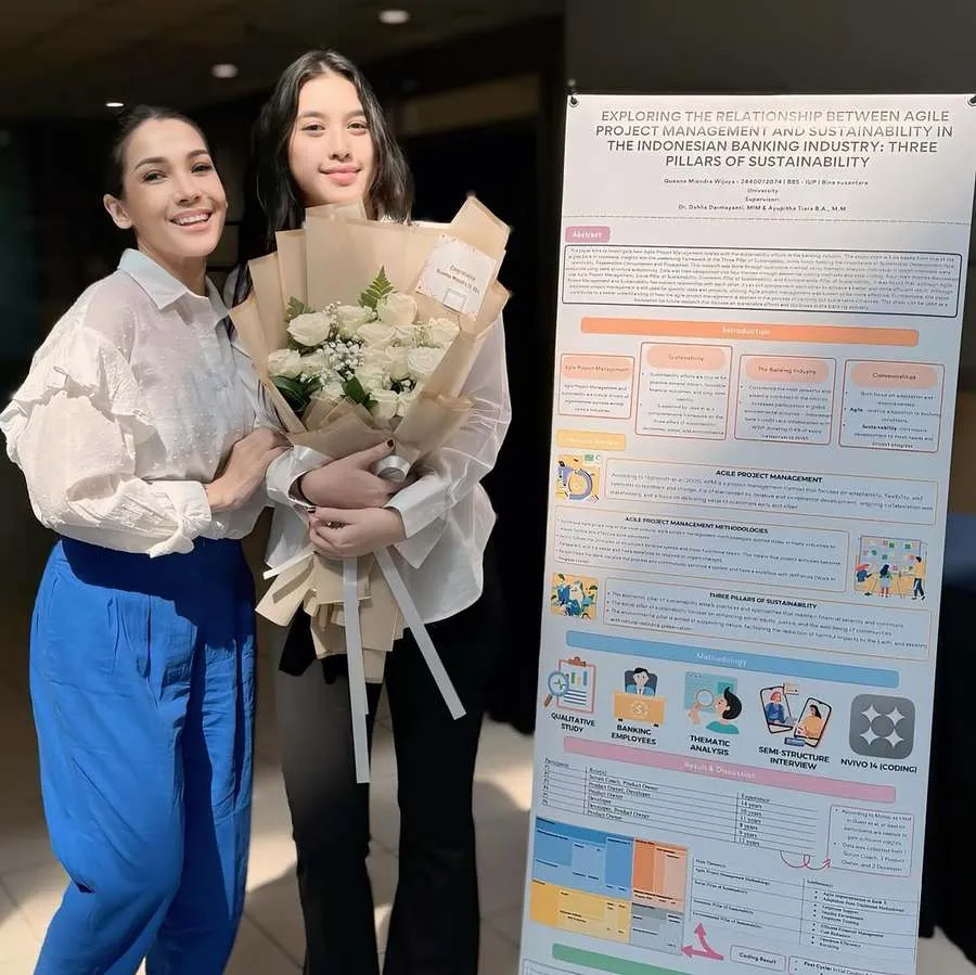 Kebahagiaan tengah menyelimuti hati Queena, putri Mieke Amalia. Ia baru-baru ini wisuda menandakan kuliahnya di Binus telah berakhir.