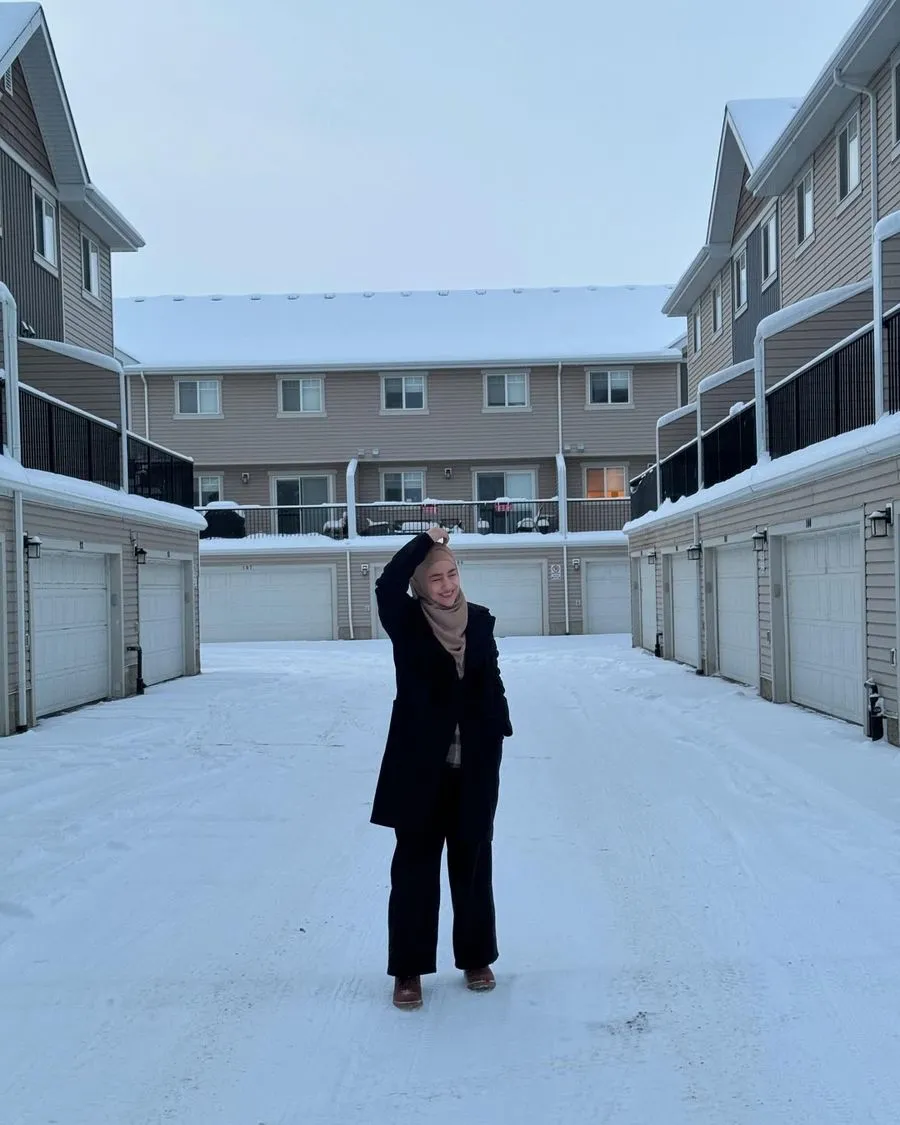Kanada yang jadi serba putih tertutup salju diakuinya terasa dingin banget dengan suhu mencapai minus 15 derajat Celsius.