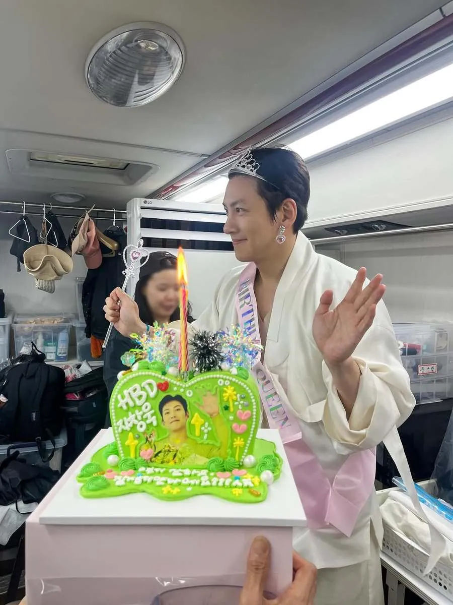 Ji Chang Wook rayakan ulang tahun dengan gaya 'putri', lengkap dengan mahkota dan anting pink yang lucu.