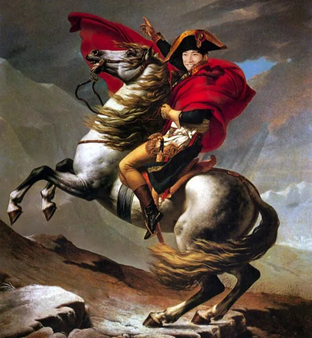 Cuitan tersebut dilampiri foto lukisan Napoleon Crossing the Alps karya Jacques-Louis David dan Alexander Mosaic yang menggambarkan Alexander the Great.