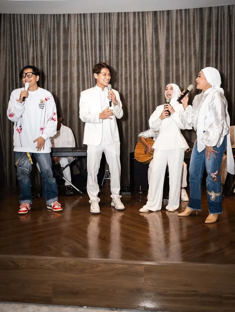 Mulai dari Shandy Purnama, Gilang Juragan99, Rina Nose dan suami, Gilang Dirga dan istri, hingga Ahmad Dhani dan Mulan Jameela turut hadir.