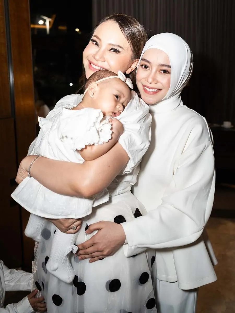 Rossa juga terlihat asik menggendong baby Leshia yang imut. Lesti Kejora pun terlihat memeluk Rossa dari belakang.
