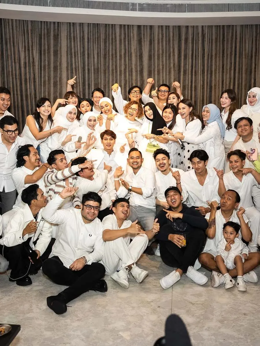 Begini potret teman-teman artis yang datang di momen ulang tahun Rizky Billar dengan dresscode putih.