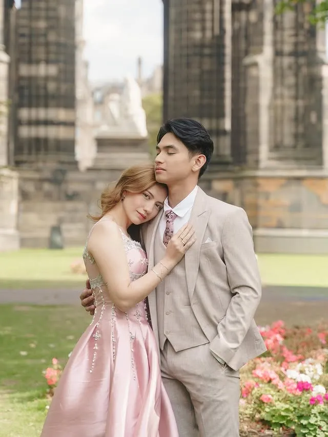 Inilah potret Cassandra Lee dan Ryuken Lie saat kembali berbulan madu di Edinburgh. Cassandra Lee dan Ryuken tampak serasi dengan busana formal yang elegan.