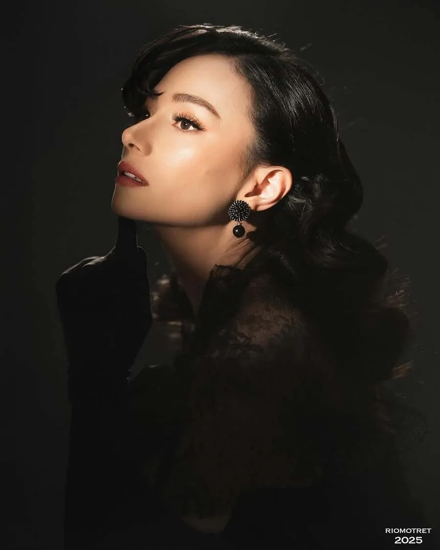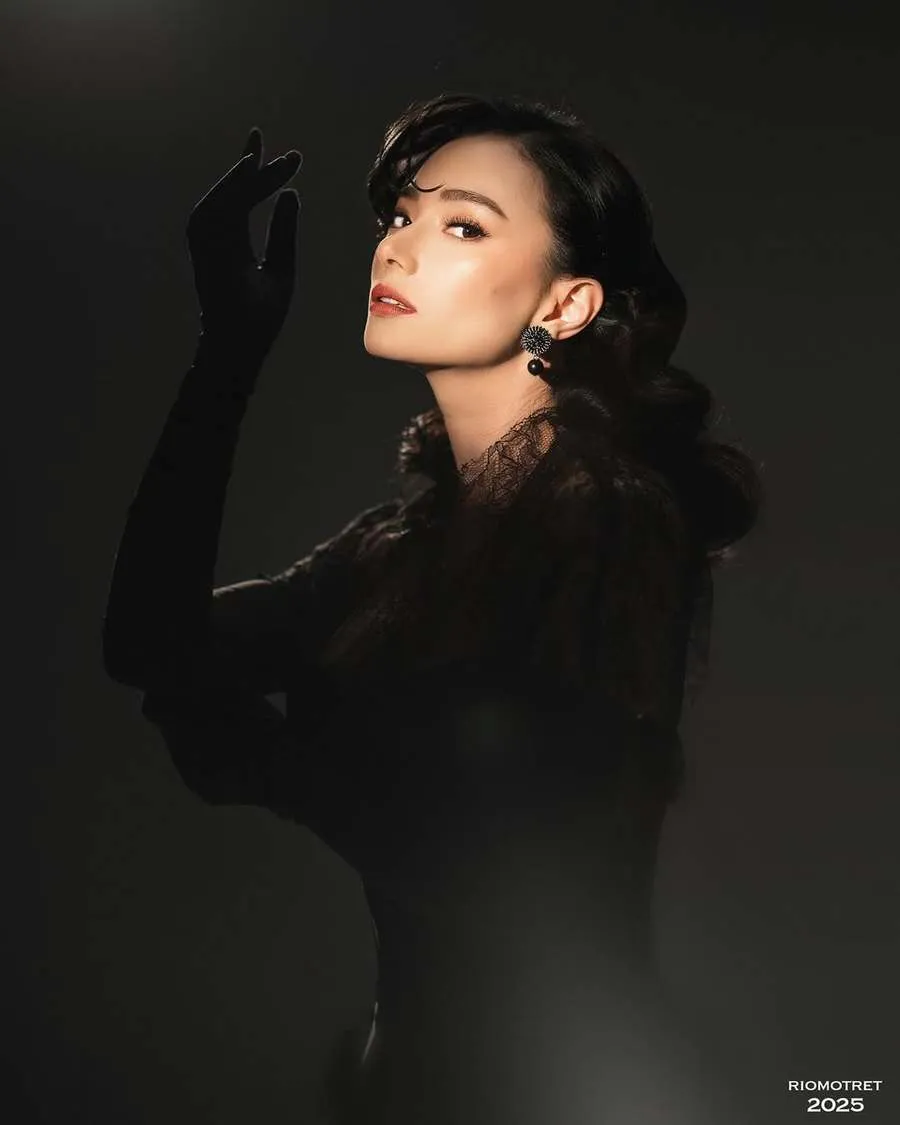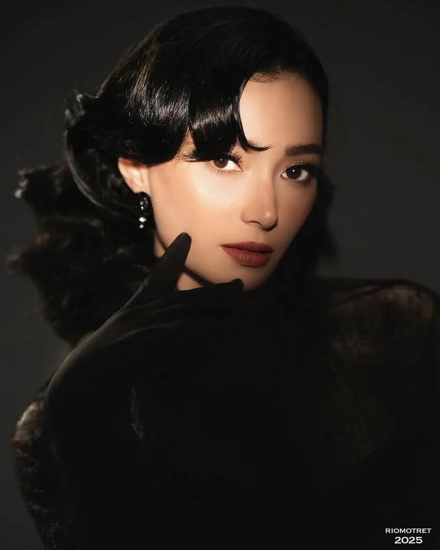 Asmirandah tampak cantik dalam penampilan bernuansa klasik. Gaun hitam dan tata rambutnya yang wavy di poni menegaskan kesan tersebut.