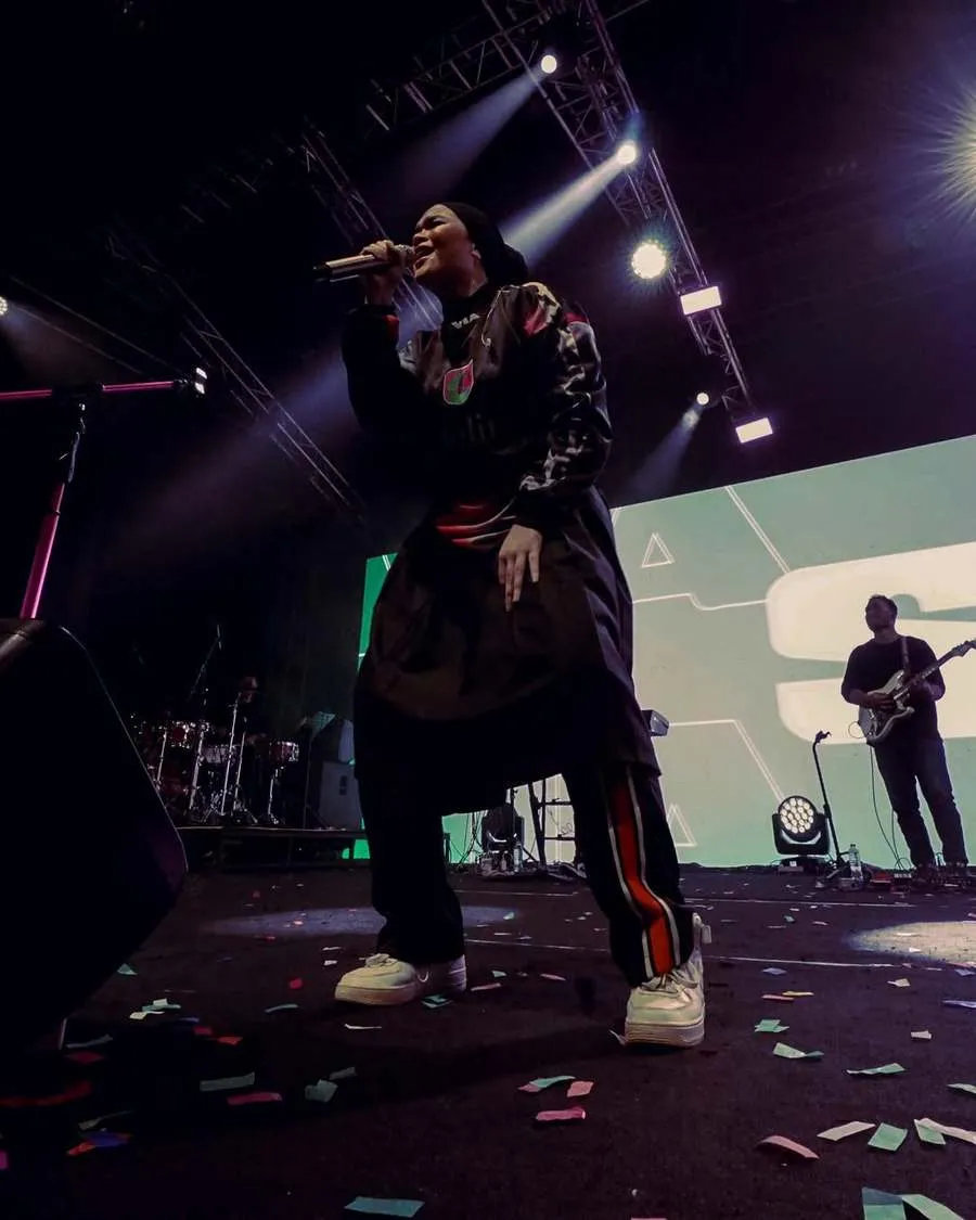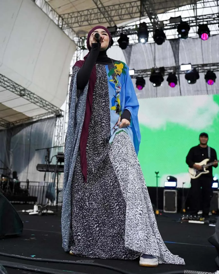 Penampilan Sivia Azizah di atas panggung yang syar'i tapi tetap stylish dan skena abis.