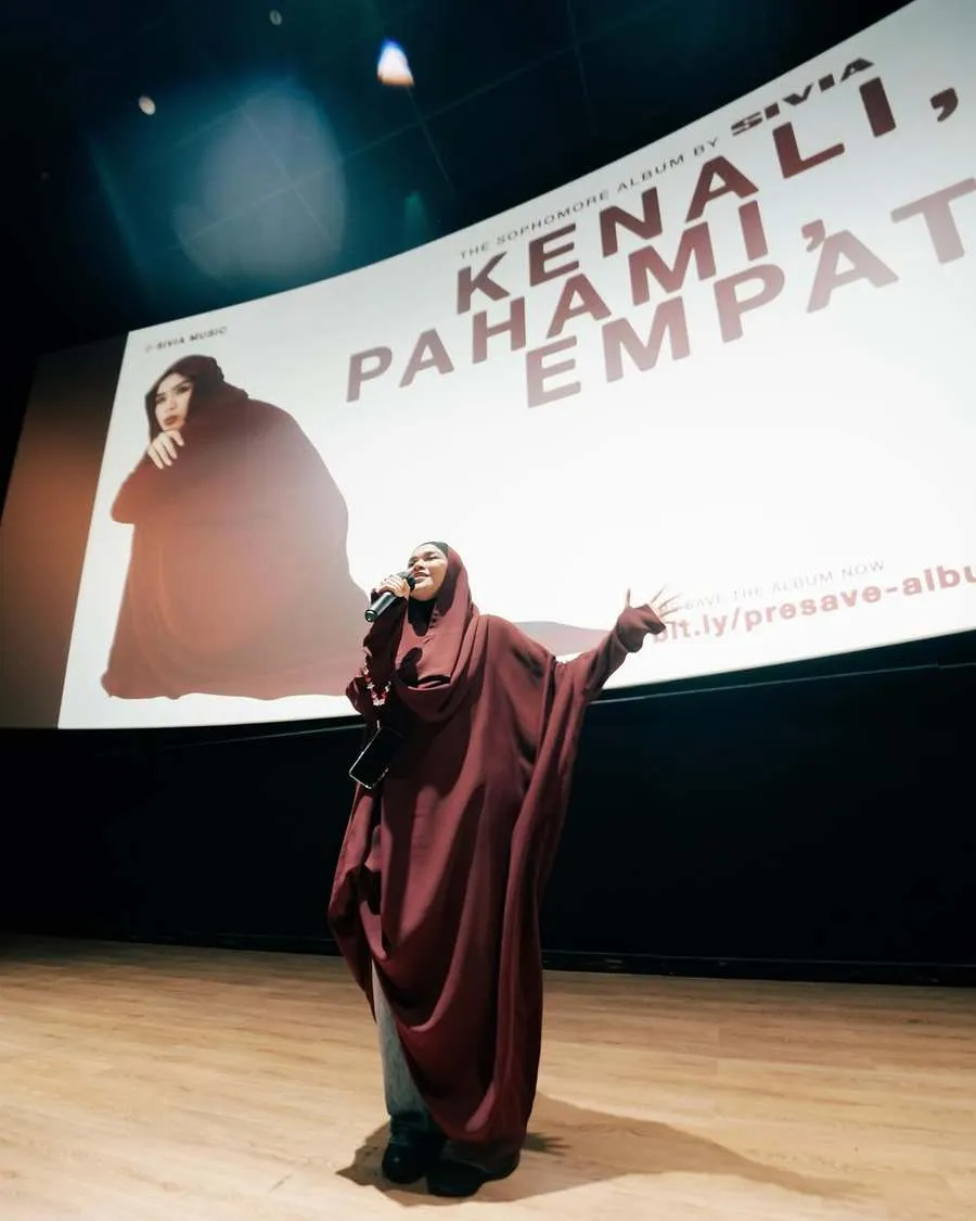 Saat merilis album Kenali, Pahami, Empati, Sivia tampil dalam balutan abaya berwarna maroon yang memiliki bagian hoodie. Bagian hoodie itu ia kenakan sebagai hijab dan dipadukan dengan bawahan oversize.