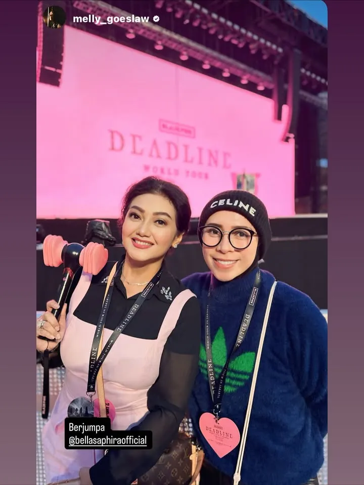 Di konser BLACKPINK, Bella Saphira juga sempat bertemu Melly Goeslaw. Dilihat dari ID card yang dipakai, keduanya sama-sama menonton dari bagian penonton VIP.