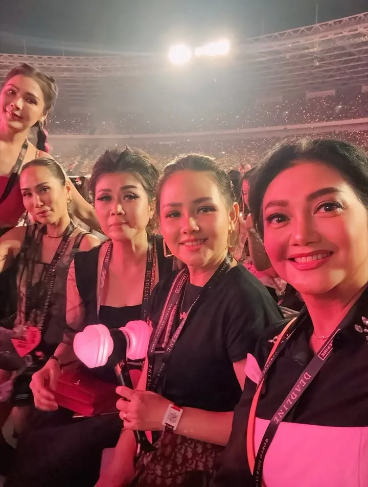 Menariknya, Bella Saphira ternyata nonton konser BLACKPINK bareng geng ibu-ibu sosialitanya. Mereka terlihat yang kompak dan seru menikmati kemeriahan konser BLACKPINK.