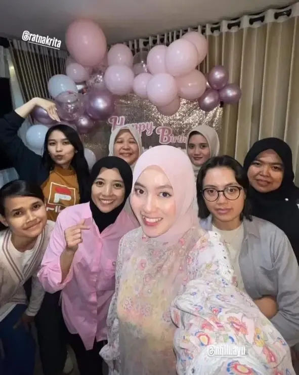 Inilah potret Nabilah Ayu di perayaan ulang tahunnya yang ke-26 tahun. Nabilah tampil cantik mengenakan hijab dan dikelilingi balon bernuansa pink. Senyum bahagia terpancar dari wajah cantiknya.