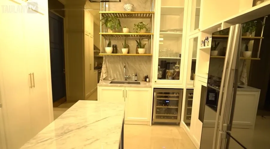 Dapur rumah Luna Maya menjadi sorotan karena desainnya yang mewah dan didominasi warna putih. Dapur ini mengusung gaya modern dengan material marmer putih keabu-abuan pada kitchen island.