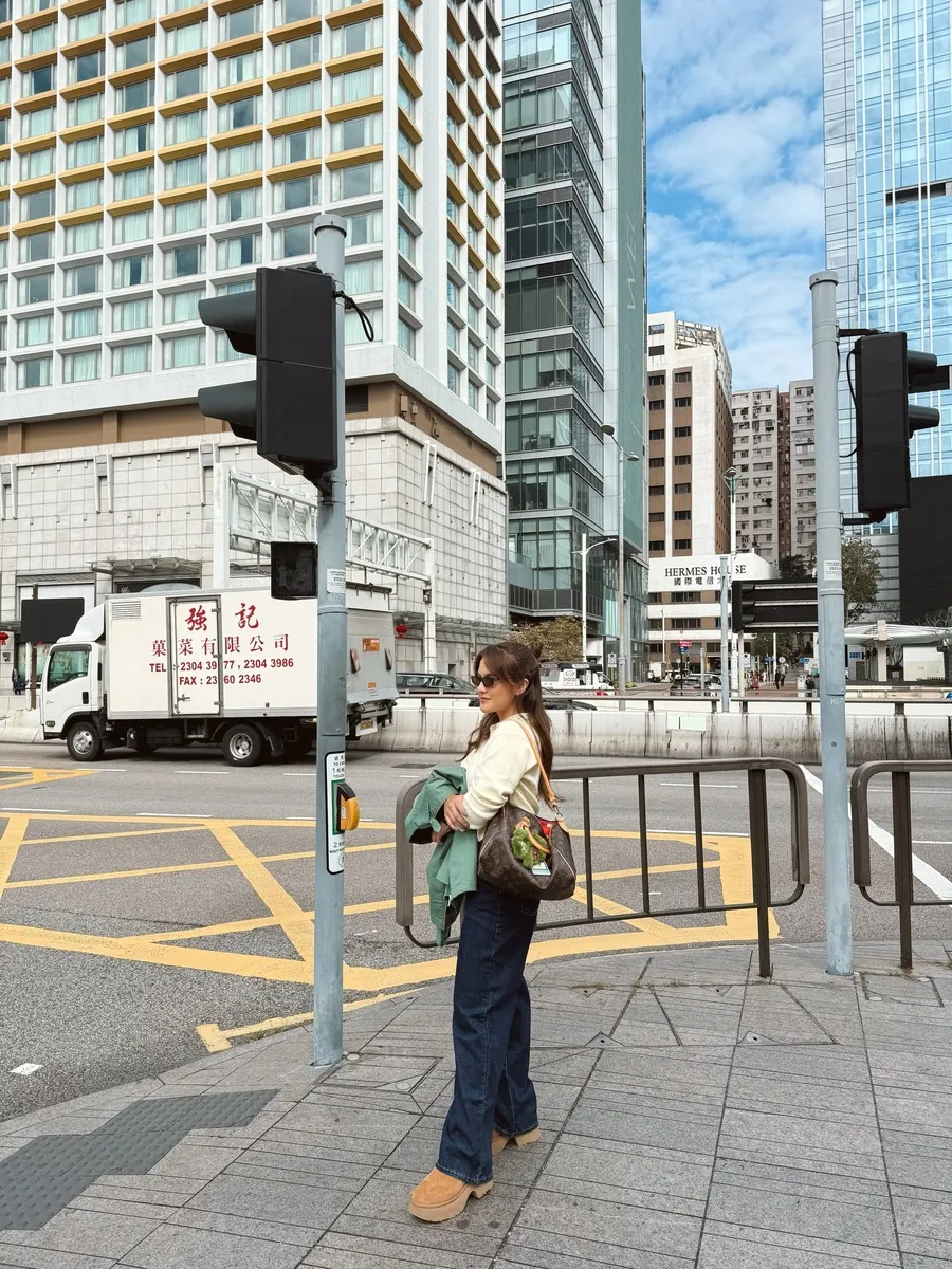 Marsha Aruan juga menikmati momen jalan-jalan keliling kota Hongkong. Marsha tampak keren saat berpose santai di tengah gedung-gedung tinggi, penampilannya tampak begitu memukau.