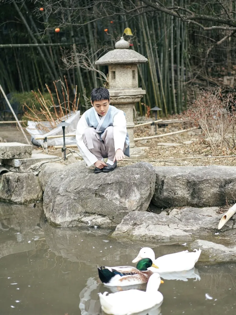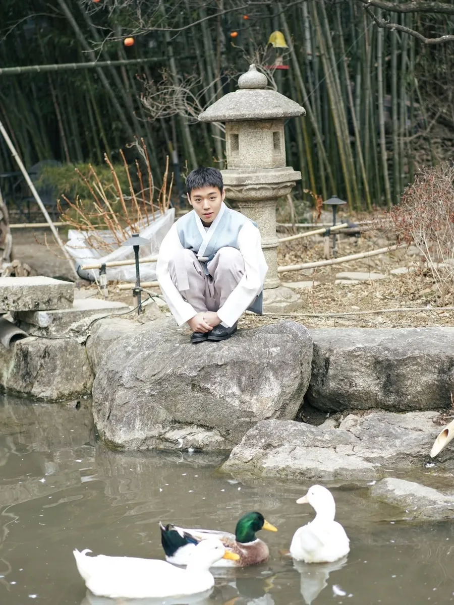 Penampilan Park Ji Hoon pakai hanbok ini sukses mencuri perhatian karena menghadirkan unsur tradisional di era modern ini.