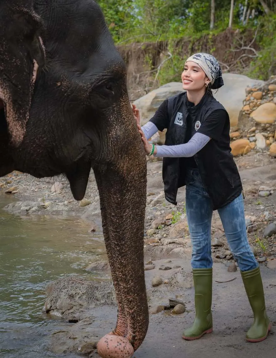 Aksi sosial ini dilakukan bersama World Wide Fund for Nature (WWF) yang fokus pada isu lingkungan dan kemanusiaan. Ia juga berinteraksi dengan gajah di sana dan berpesan untuk melindungi gajah dan satwa yang menurutnya bisa membantu kelangsungan hidup manusia.