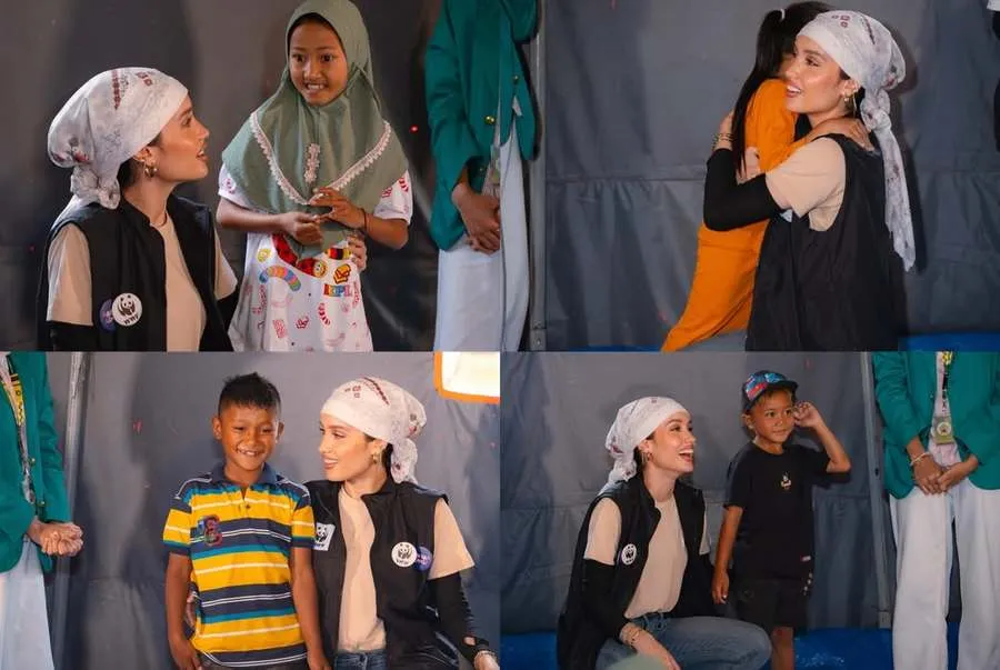 Dalam rangkaian kegiatannya, Cinta Laura juga mengunjungi sekolah darurat yang dibangun untuk anak-anak korban bencana. Ia menyapa para siswa, mengajak bermain dan memberi semangat meski di tengah keterbatasan.