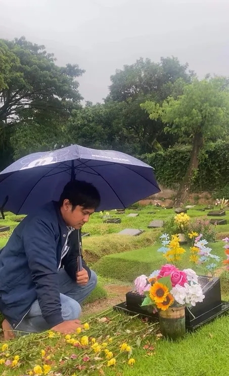 Karina Ranau berpamitan dan mencium nisan makam mendiang suaminya. Ditinggalkan orang tersayang untuk selama-lamanya, tentu meninggalkan rasa sakit.