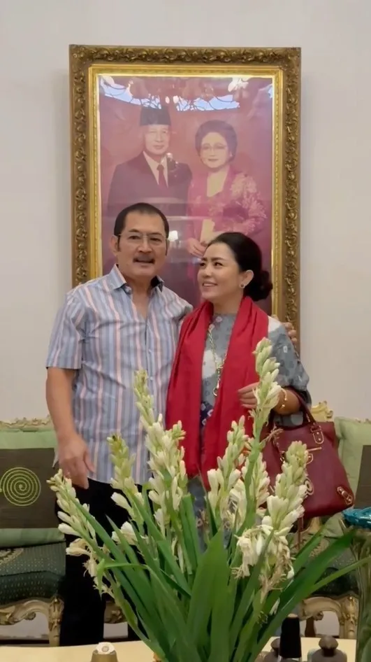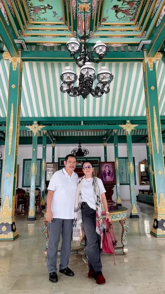 Bambang Tri dan Khirani berpose di keraton Solo yang sempat mereka kunjungi selain berziarah ke makam Pak Harto dan Ibu Tien.
