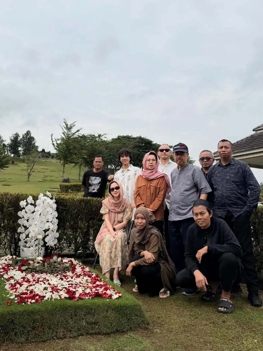 Kebersamaan ini menunjukkan bahwa Ashraf Sinclair tetap menjadi bagian penting dalam keluarga. Dari foto yang terlihat, makam dihiasi taburan bunga merah dan putih yang tertata rapi.