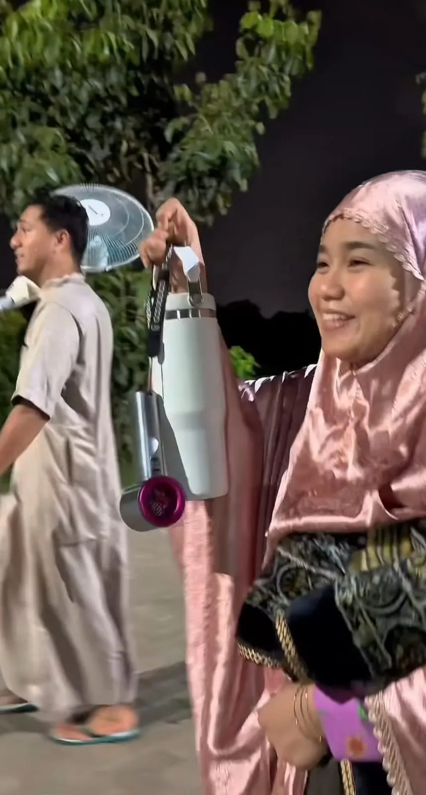 Aulia DA4 juga tampak semangat berjalan kaki menuju masjid komplek untuk menunaikan salat tarawih pertama. Aulia DA4 bahkan membawa bekal air minum dan kipas angin portable agar tetap nyaman beribadah.