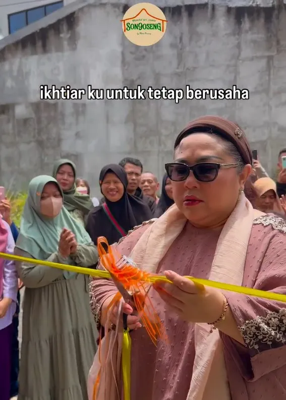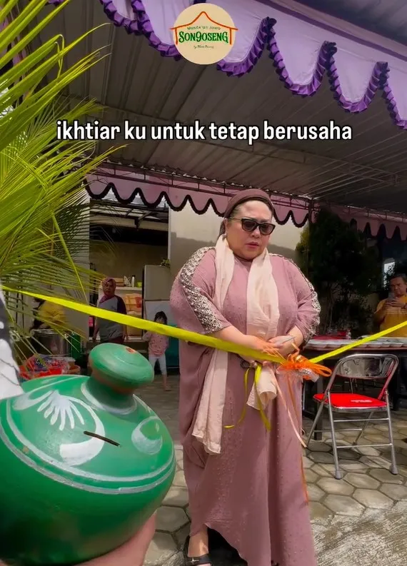Nunung selalu berdoa dan berusaha dalam menjalankan bisnis kulinernya. Begini momen grand opening restoran Jowo Songoseng.