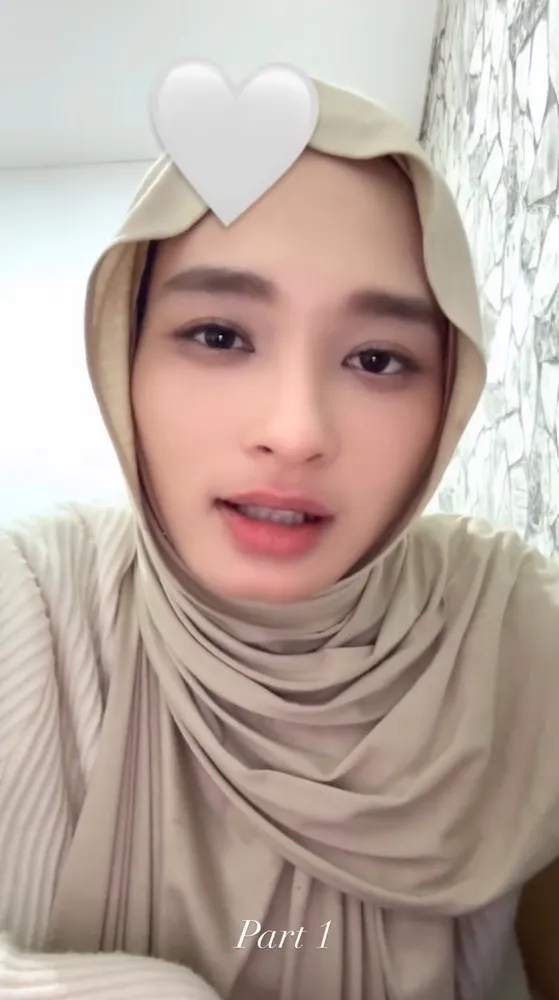 Inara terlihat mengenakan gamis bernuansa krem dengan hijab senada, tampil sederhana memakai kacatama sambil mengungkap harapannya ke depan. Wajahnya tampak tersenyum lembut saat menyentuh wajah sang anak.